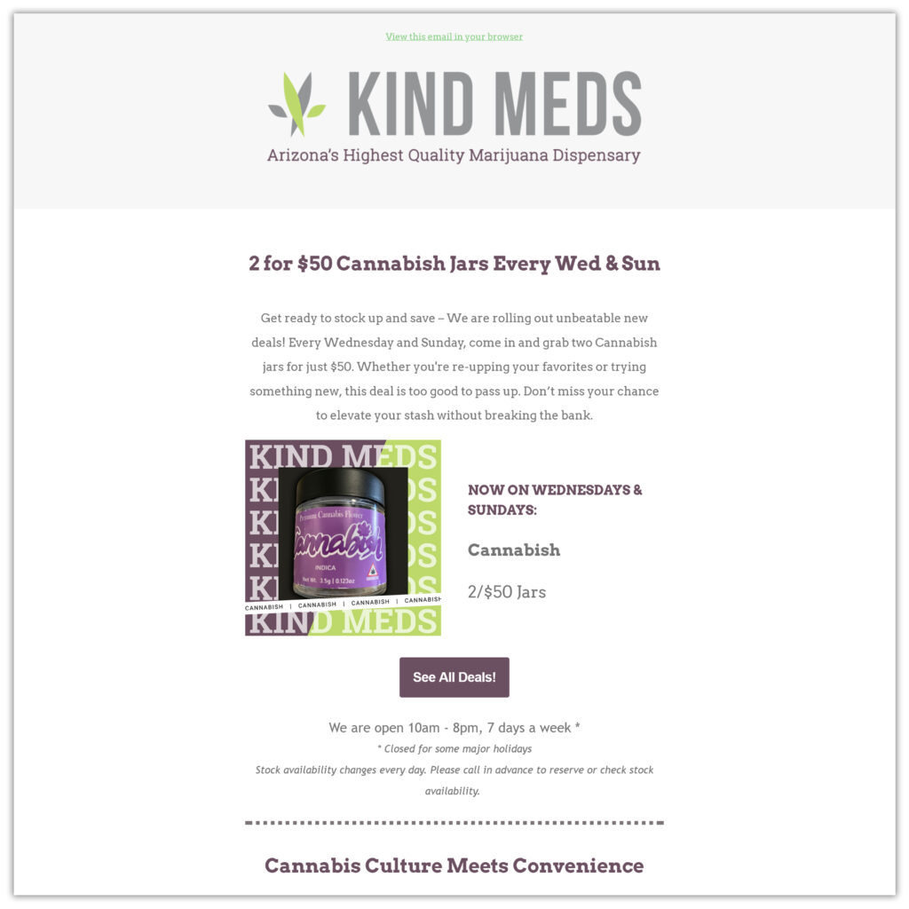 From social media to email and SMS, our marketing strategies help cannabis brands grow loyal audiences and drive conversions- all with compliant, custom campaigns.